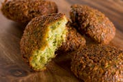 炸角是一种非常受欢迎的素食小吃,采用鹰嘴豆或蚕豆泥或两者混合炸成的松脆小球或扁平圆形肉片制作而成,搭配大蒜、欧芹、香菜和芝麻酱食用。可以单独吃,也可以卷进 pita 饼里,搭配沙拉和泡菜一起吃。